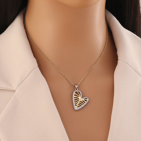 Heart & Butterfly Stainless Steel Pendant Necklace