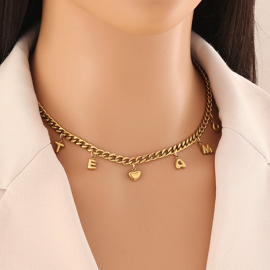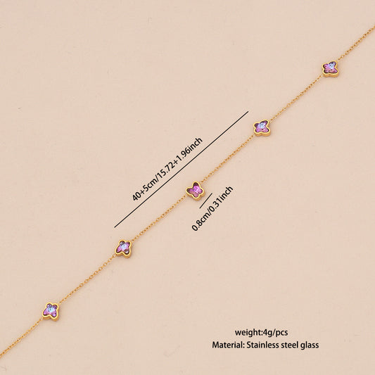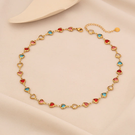 Colourful Heart Rhinestone Stainless Steel Necklace