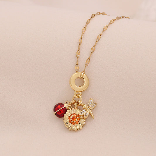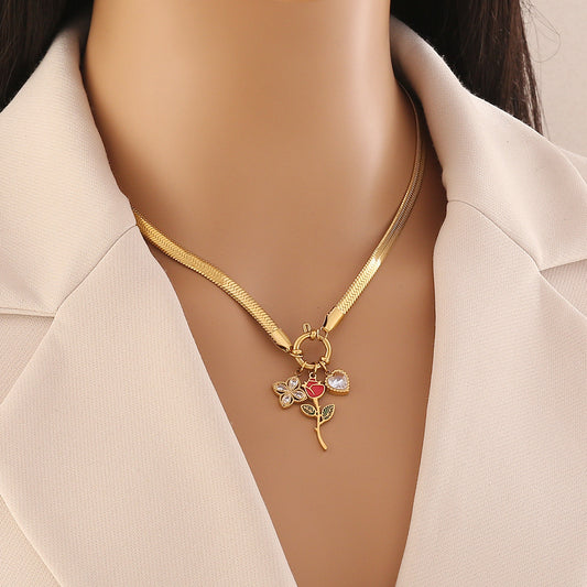 Four-Leaf Clover Heart Daisy Pendant Necklace