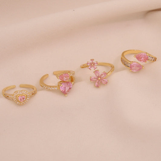 Zircon Heart 18K Gold-Plated Floral Bracelet