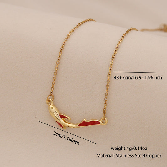 Vintage Tarot Card Heart & Fish Stainless Steel Necklace