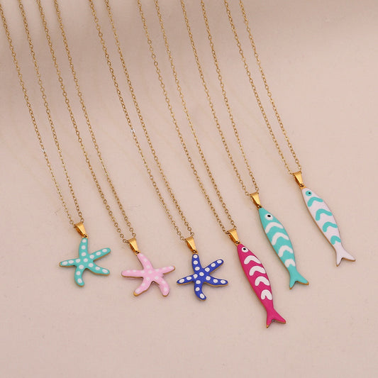 Enamel Starfish & Fish Multicolour Stainless Steel Necklace