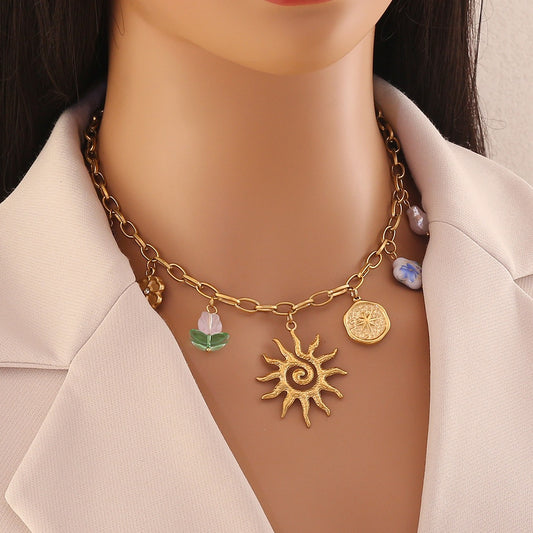 Gold-Plated Sun, Moon, Gemstone & Pearl Pendant Necklace