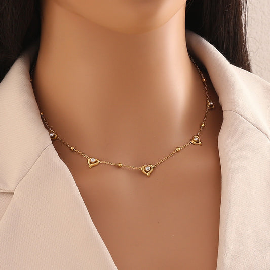 Dual-Colour Enamel Heart Stainless Steel Necklace