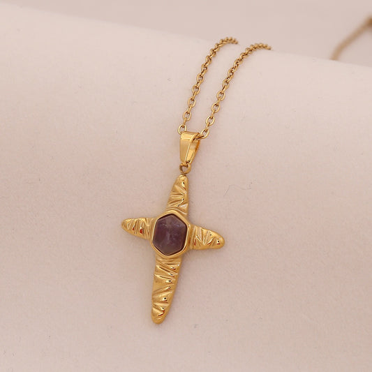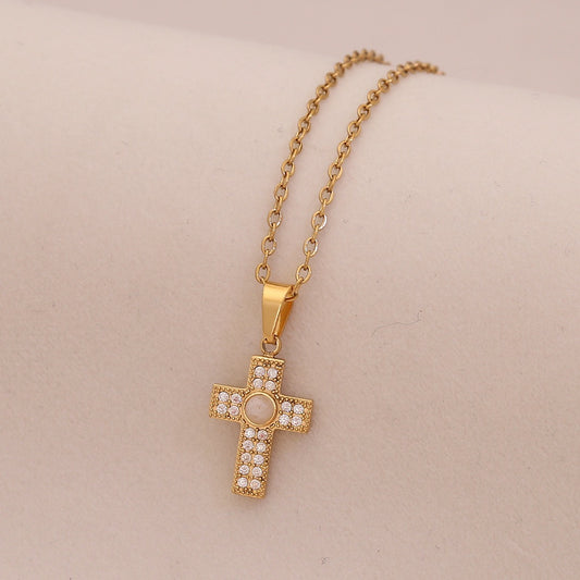 Micro-Paved Zircon Cross Stainless Steel Necklace