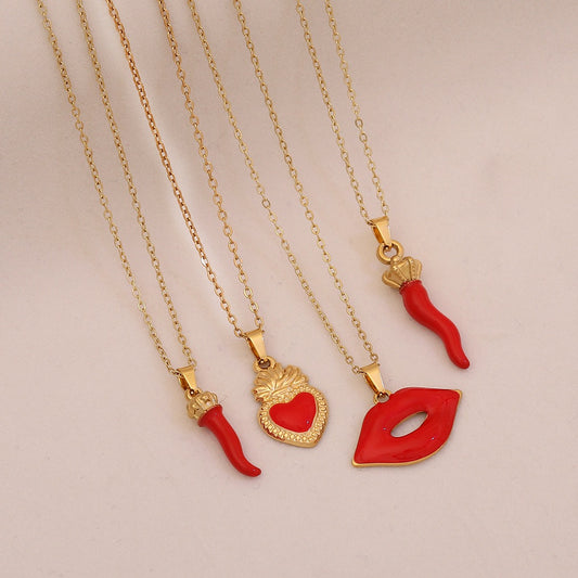 Red Lips & Chilli Pepper Stainless Steel Necklace