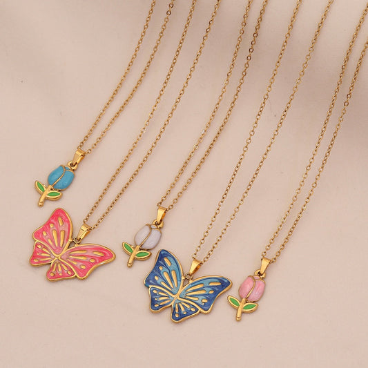 Enamel Palm Tree Beach Stainless Steel Necklace