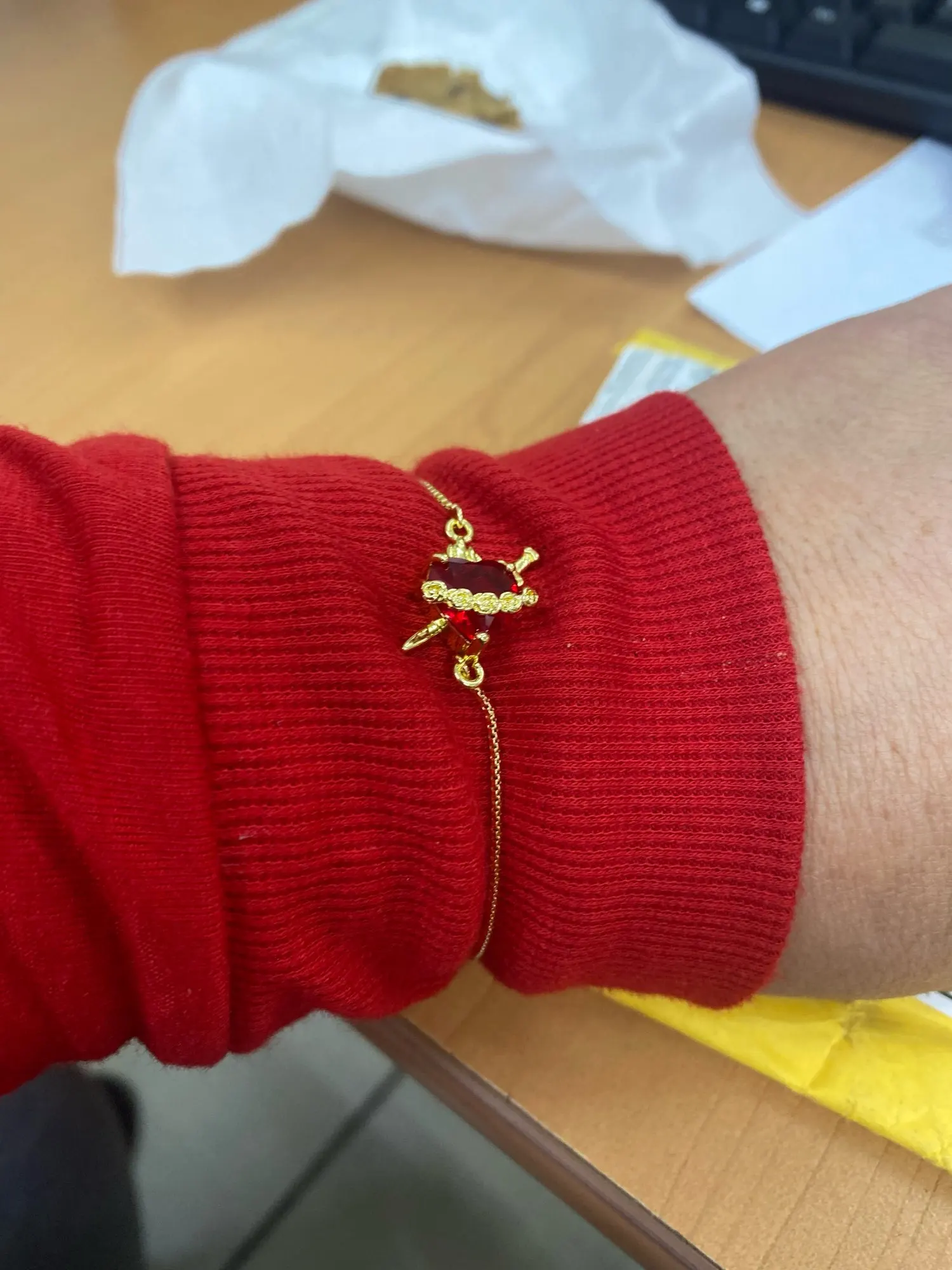 The Crimson Heart Adjustable Bracelet is a delicate celebration of affection and strength. With its vivid red heart resting on a sleek adjustable band, it speaks to the beauty of love that grows, moves, and adapts — a simple piece that carries infinite meaning.