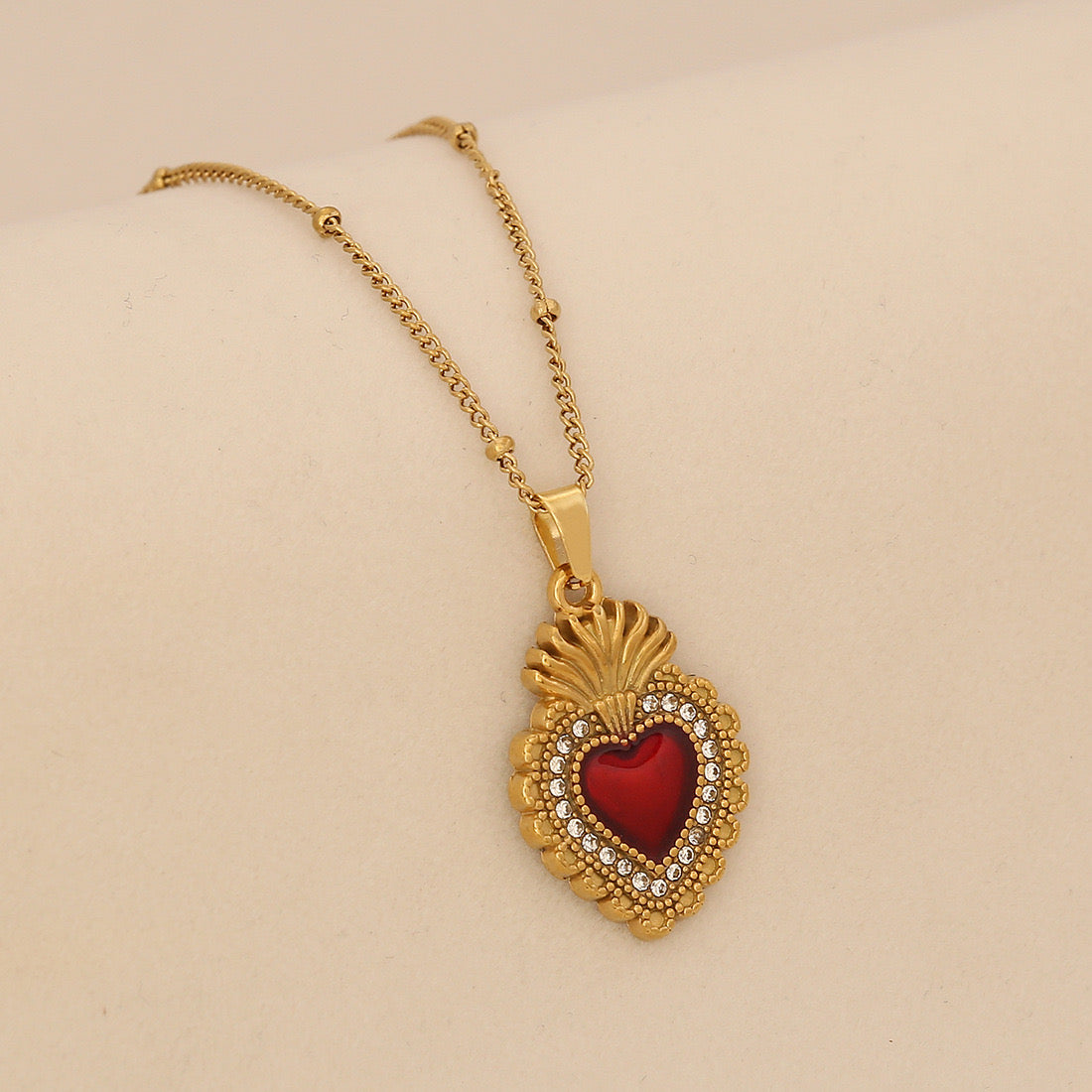 TheĀ Crimson Heart Pendant NecklaceĀ radiates pure passion and timeless charm. A luminous red heart lies at its centre ā a symbol of connection, desire, and devotion. Designed for the modern romantic, itās an ode to love that burns bright and eternal.