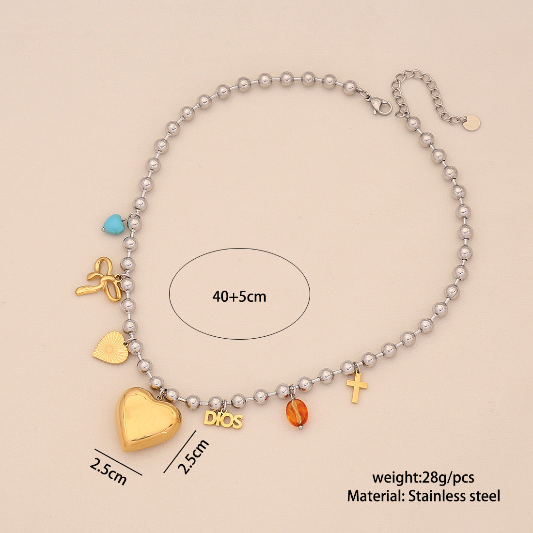 Discover the perfect blend of elegance and charm with our Dopamine Cross & Pearl Heart Necklace. This exquisite piece adds a touch of sophistication to any outfit, making it an essential addition to your jewellery collection.
