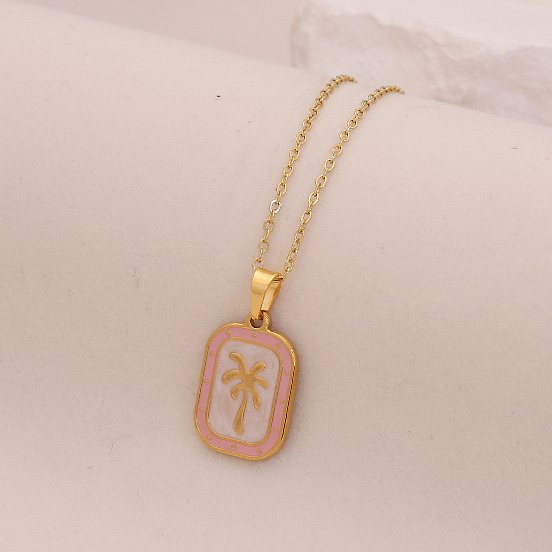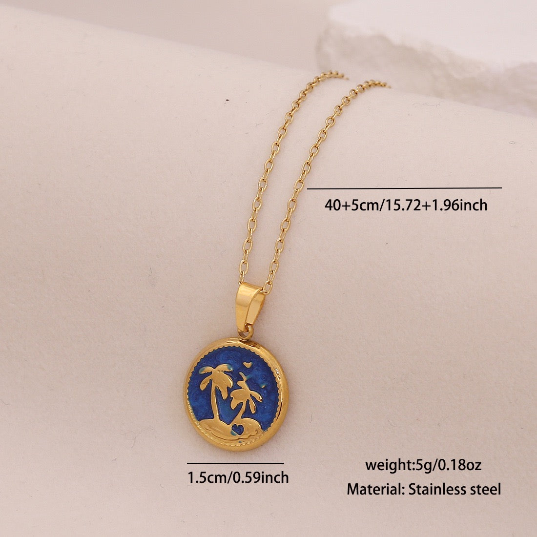 Capture the spirit of summer all year long with the Enamel Palm Tree Beach Stainless Steel Necklace—handmade, eco-conscious, and always in style!