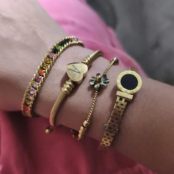 Elevate your accessory game with the Full Zircon Heart Stainless Steel Bracelet Set – Multicolour, a vibrant addition to any jewellery collection!