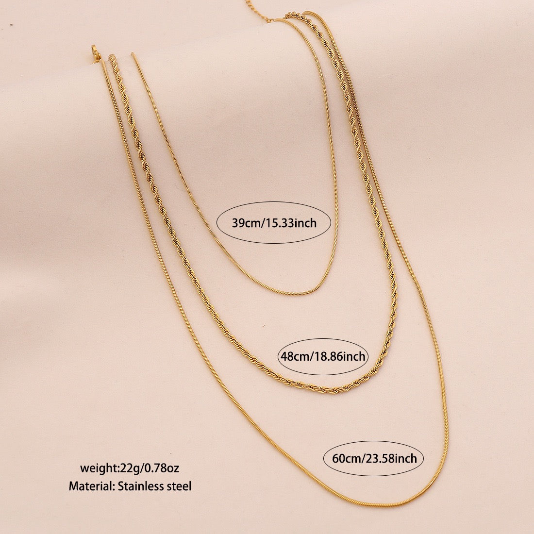 Meet the Golden Layers Triple Chain Necklace — a statement of quiet sophistication and modern romance. With three perfectly balanced strands, it drapes beautifully across the collarbone, embodying both strength and softness in one timeless design.