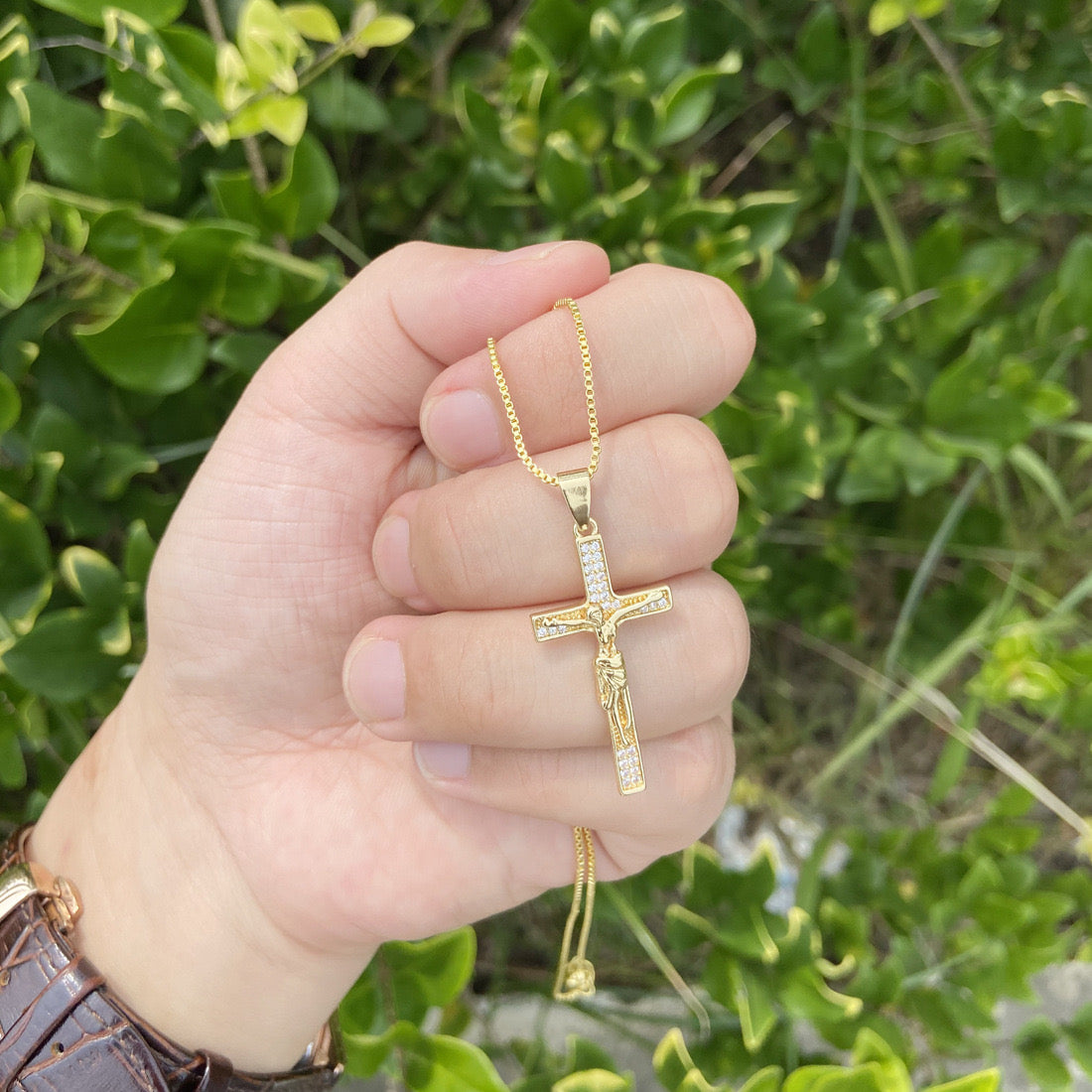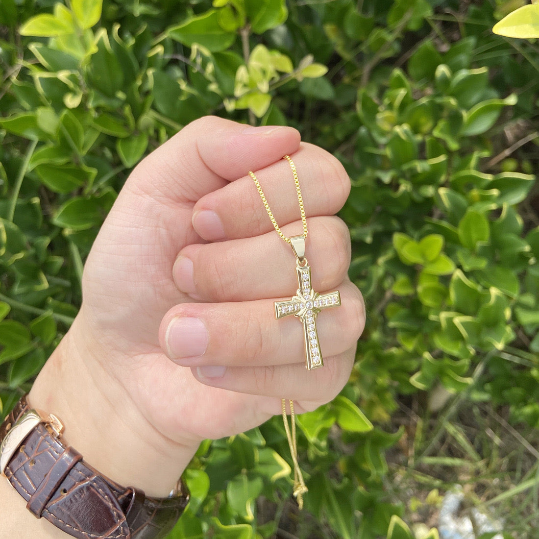 Embrace faith and fashion with the Micro-Pavé Zircon Cross Pendant Necklace – 18K Gold Plated—where bold design meets conscious craftsmanship.