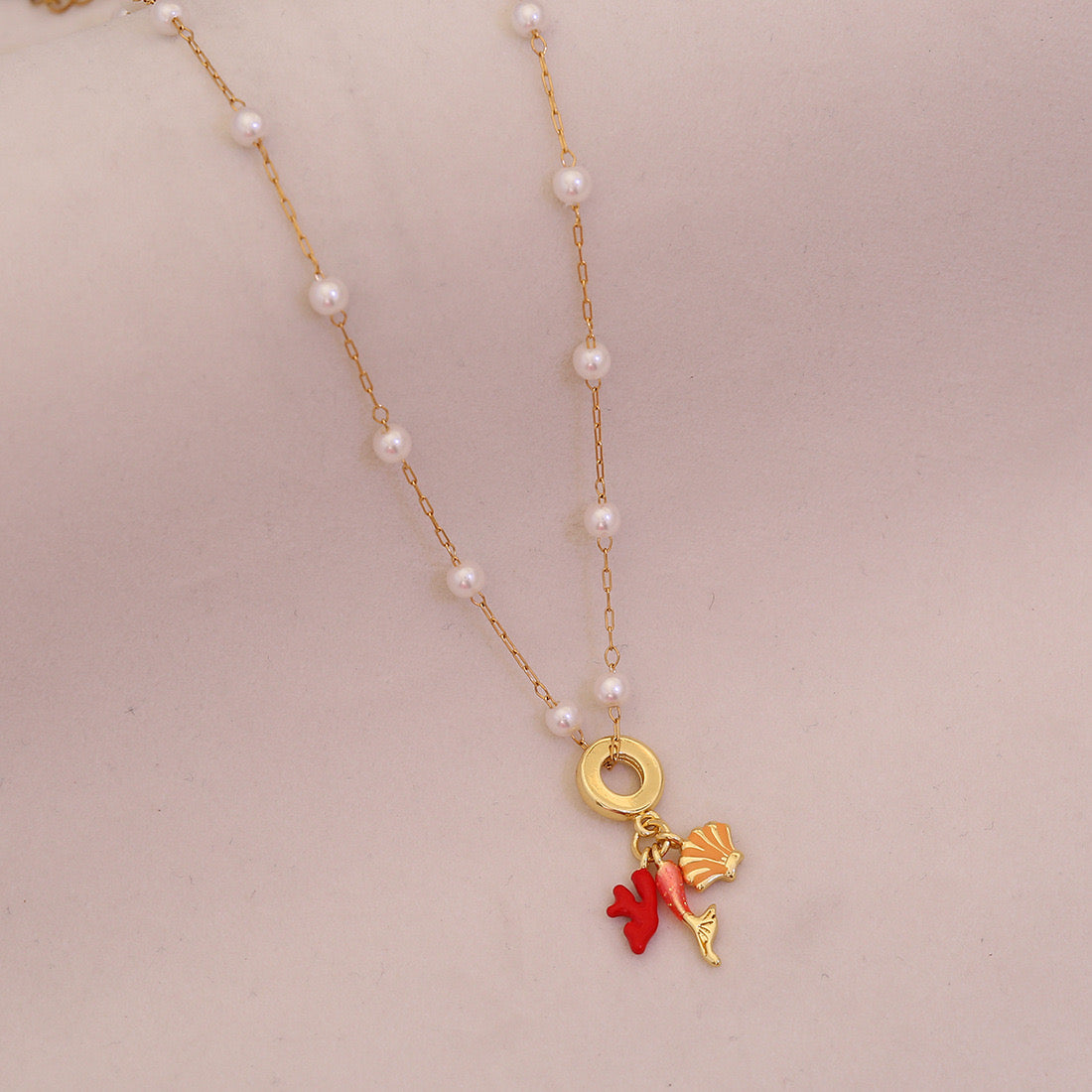 Dive into serenity with the Ocean Grace Pearl Necklace — a delicate piece that captures the rhythm of the tides and the poetry of the deep. With charms of a sea turtle and a graceful fish tail paired with lustrous imitation pearls, it reflects the spirit of the ocean — calm, radiant, and endlessly beautiful.
