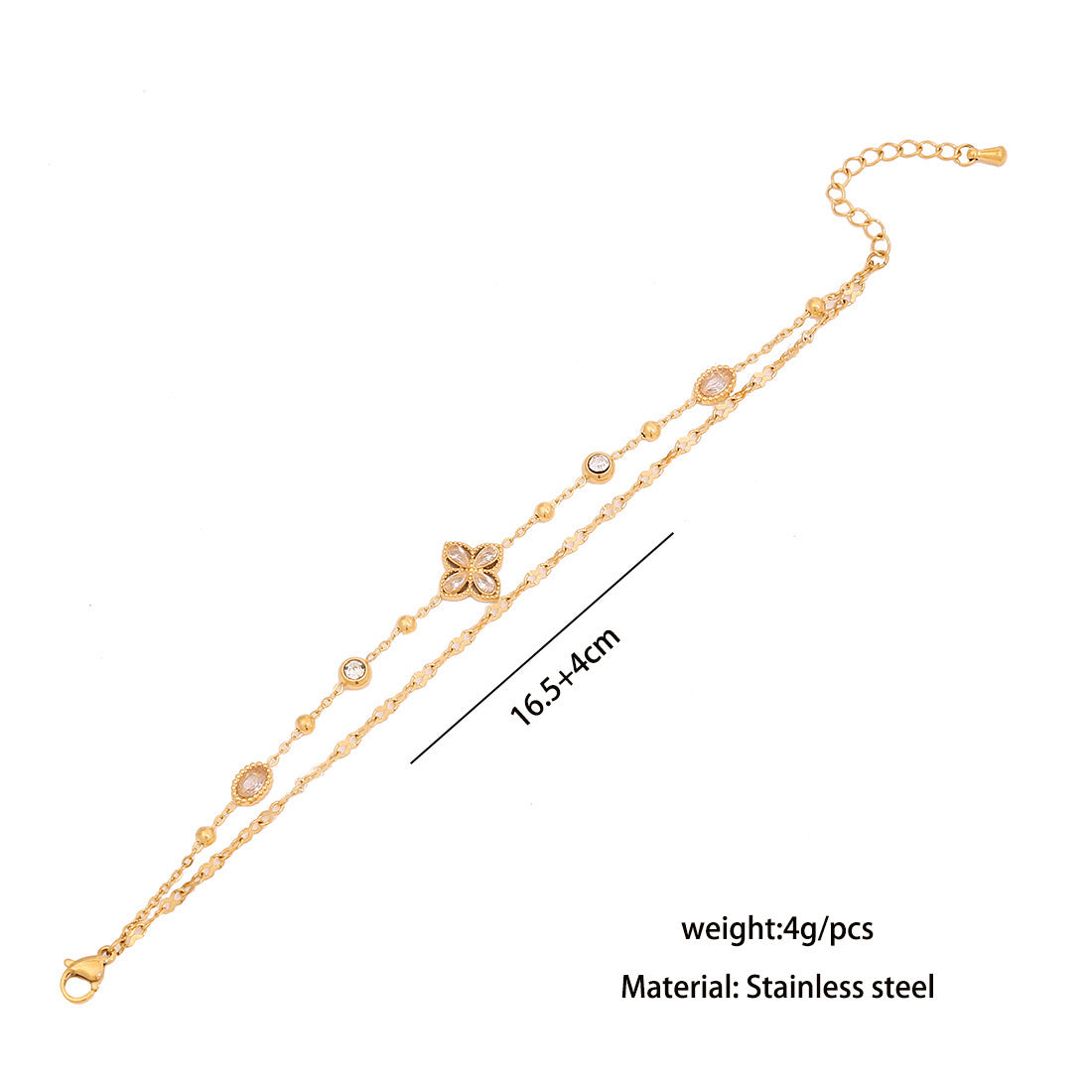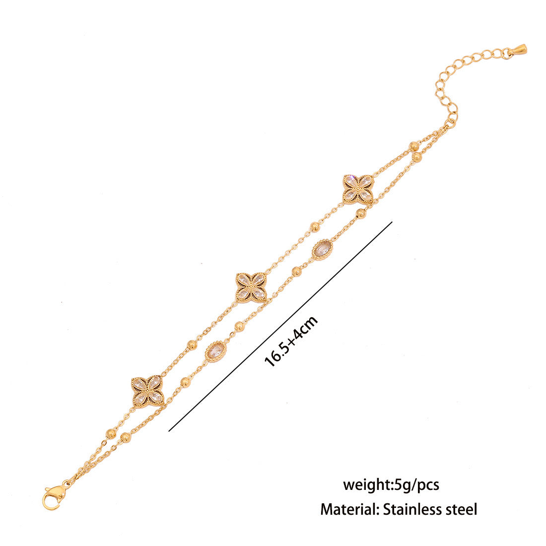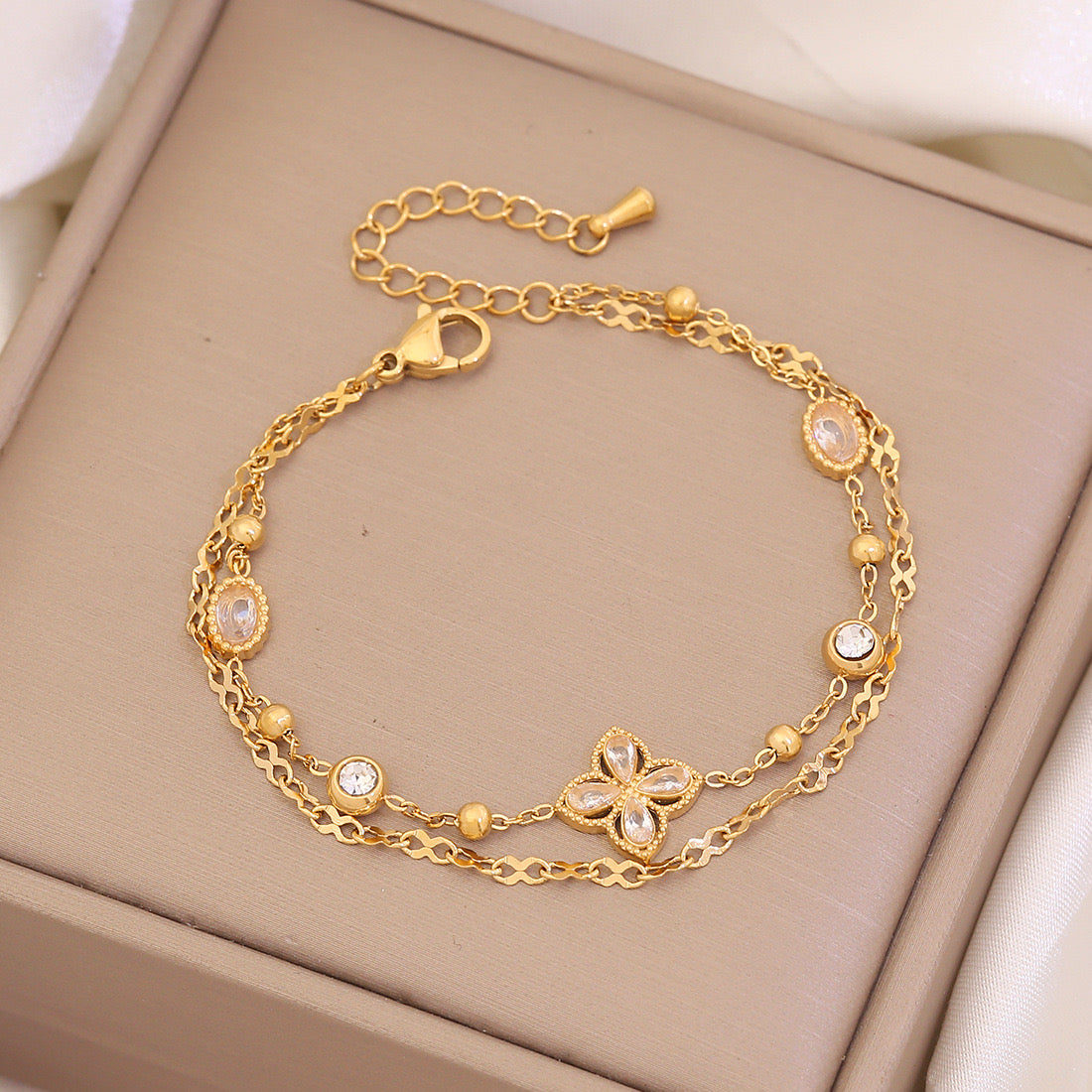 Enhance your style with the Rhinestone Flower Double Layer Bracelet – Faux Pearl & Titanium Steel, where elegance meets ethical craftsmanship!
