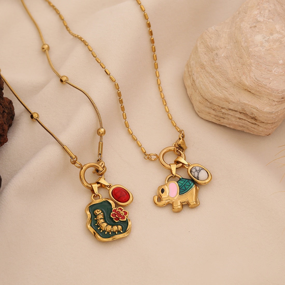 TheĀ Vintage Elephant Charm NecklaceĀ captures the wonder of the natural world ā charming, symbolic, and beautifully nostalgic. Featuring an intricately designed elephant surrounded by playful caterpillar and dragonfly motifs, itās a celebration of lifeās quiet magic and gentle strength.